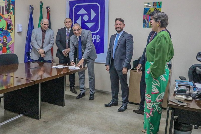 Nesta sexta-feira (21), o superintendente do Detran-PB, Isaías Gualberto, recebeu a visita do diretor geral do Detran do Rio Grande do Norte, Jonielson Pereira, para assinatura de Termo de Cooperação para implantação do sistema DetranNet. Estiveram presentes a diretora de operações, Roberta Neiva; o diretor administrativo, Celso Fernandes; o chefe de gabinete do Detran-RN, Osmar de Sousa Filho; chefes de setores do Detran-PB, além do diretor-presidente da Companhia de Processamento de Dados da Paraíba (Codata), Giuseppe Guido.